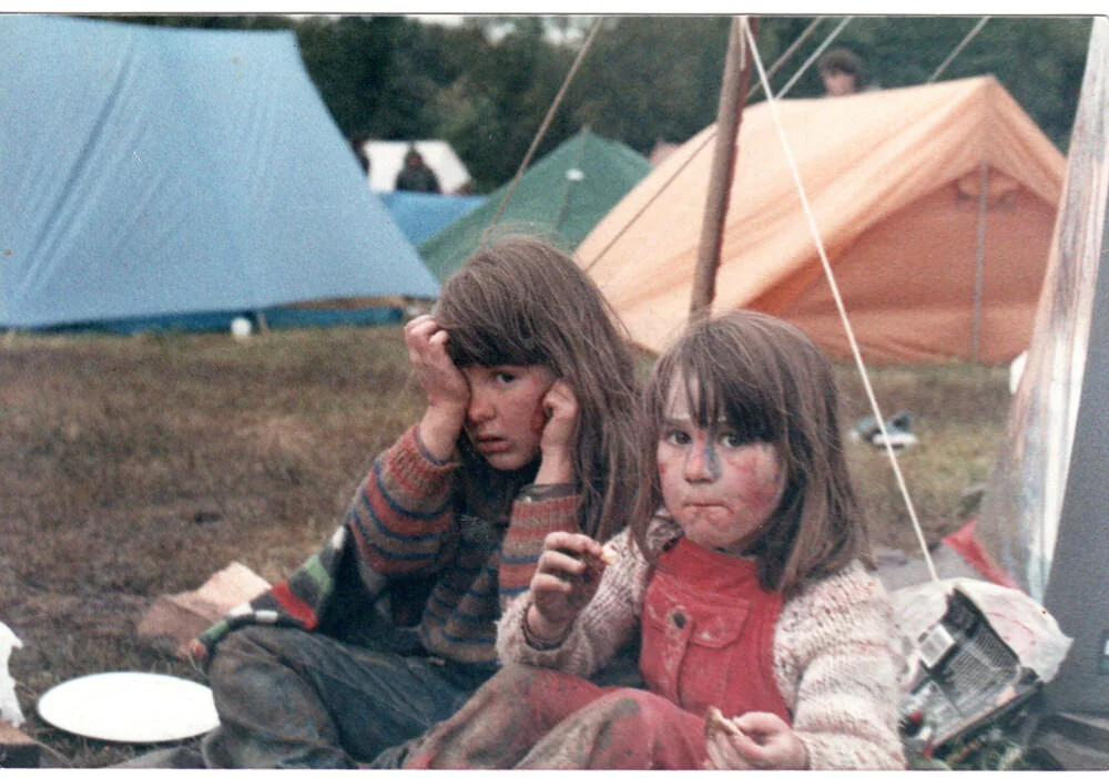“Here's a little story for yas, it was the hottest summer since Anyone could remember and my parents decided to do Glastonbury. It was a time when the locals were not pleased at all and the road leading to the site had lots of police stoping and searching vehicles. So a long snail's pace to finally reach the entrance, find a spot for the VW caravanette and for my parents to set up the awning, hence my rather ruddy cheeks being confined and cooped up in such heat. My parents took me to a wonderful children’s area having come from the quietness of Cambrian Mountains in Wales where we made our own entertainment, this was a wonderland of pure joy.